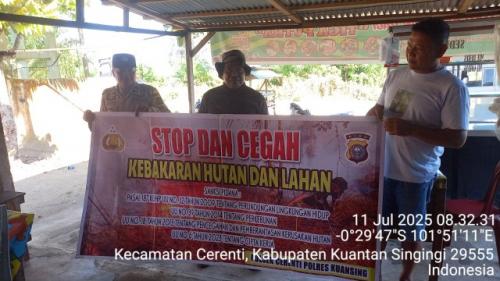 Selasa, 10-06-2025 - 12:44:53 WIB KupasKasus.com, Kuansing – Dalam rangka mendukung Program Prioritas Kapolri Nomor 5 tentang Pemantapan Kinerja Pemeliharaan Kamtibmas, Polsek Cerenti melaksanakan kegiatan pemasangan spanduk larangan kebakaran hutan dan lahan (Karhutla) di wilayah hukumnya, Selasa (10/06/2025).Kegiatan dipimpin oleh PS. KA SPK III Aipda Bobby bersama dua...(read more)