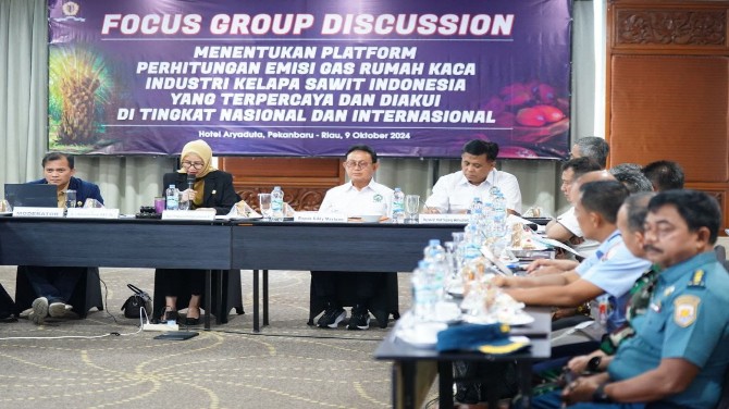 KupasKasus.com, Pekanbaru - Pemerintah Provinsi (Pemprov) yang diwakili oleh Asisten II Sekretariat Daerah Provinsi (Setdaprov) Riau, M Job Kurniawan menghadiri kegiatan Forum Group Discussion (FGD) “Menentukan Platform Perhitungan Emisi Gas Rumah Kaca Industri Kelapa Sawit Indonesia Yang Terpercaya Dan Diakui Di Tingkat Nasional Dan Internasional”. FGD tersebut digelar oleh Lembaga Ketahanan Nasional Republik Indonesia (Lemhannas RI) di Hotel Arya Duta Pekanbaru, Rabu (9/10/2024).