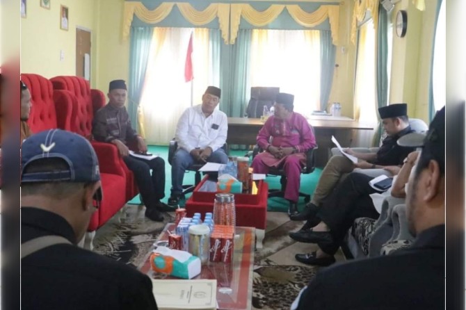 Rombongan Komisi I DPRD Provinsi Riau diterima oleh Camat Rimba Melintang Sukirman, beserta staf dan jajarannya.