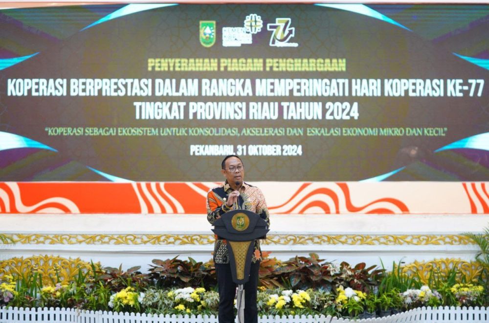"Peringatan 77 Tahun Hari Koperasi kali ini menjadi penting untuk merefleksikan bagaimana agar peran koperasi di tanah air semakin strategis dalam menjawab tantangan krisis, dan khususnya untuk mempercepat ikhtiar kebangsaan keluar dari middle income trap," kata Pj Gubernur Riau.