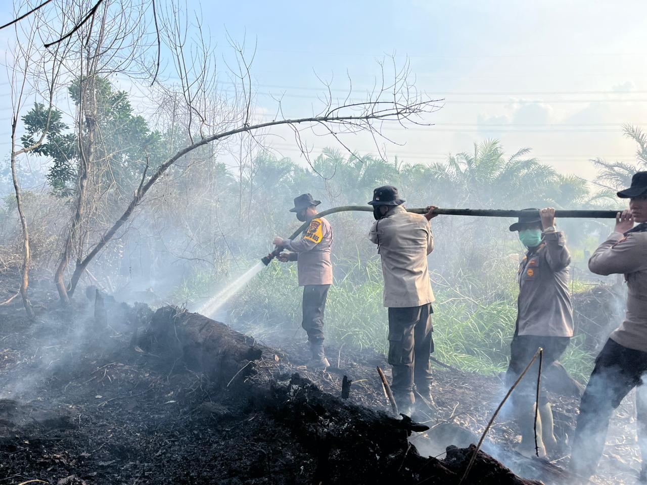 Kapolres Pelalawan Pimpin langsung Pemadaman dan Pendinginan Karhutla di Desa Kuala Terusan Kecamata