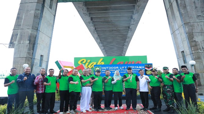 KupasKasus.com, Siak Sri Indrapura - Direktur Operasional Museum Rekor Indonesia (MURI)Yusuf Ngadri akhir menyerahkan piagam penghargaan MURI kepada Bupati Siak Alfedri atas penetapan Lift Outdoor Jembatan Tengku Agung Sultanah Latifah (TASL) Siak sebagai Outdoor Lift Pertama dan satu-satunya di Indonesia.