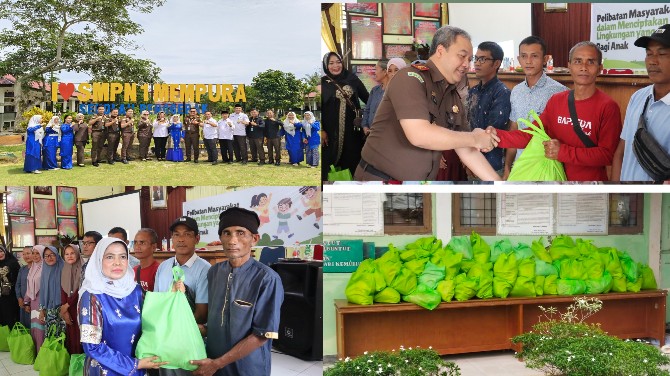 Diakhir acara Moch Eko Joko Purnomo, SH, MH membagikan peralatan tulis untuk para peserta didik,orang tua peserta didik mendapat santunan sembako sebanyak 70 bingkisan bagi keluarga menengah kebawah paket, Winda Harniati, M.Pd mengucapkan terimakasih kepada bapak Kejari Siak Bapak Moch Eko Joko Purnomo, SH, MH beserta rombongan dan Rozi Chandra Plt Disdikbud beserta rombongan atas kunjungan kerjanya di SMPN I Mempura ini,dan mewakili orang tua peserta didik dengan ucapan terimakasih yang sebesar-besarnya.(sh.s)