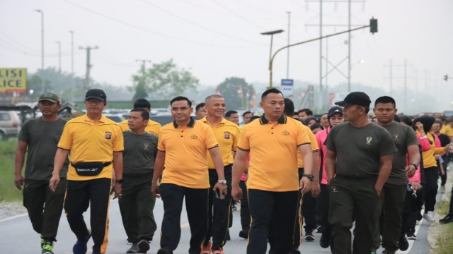KupasKasus.com, Siak – Dalam rangka menyambut Hari Bhayangkara ke-79 yang jatuh pada 1 Juli 2025 mendatang, Polres Siak menggelar kegiatan olahraga bersama di Lapangan Bola Voli Mapolres Siak, Jumat pagi (27/6). Acara yang dimulai sejak pukul 05.30 WIB ini berlangsung semarak dan penuh nuansa kekeluargaan, melibatkan berbagai unsur Forkopimda, OPD, tokoh masyarakat, serta jajaran kepolisian dari seluruh Polsek se-Kabupaten Siak.