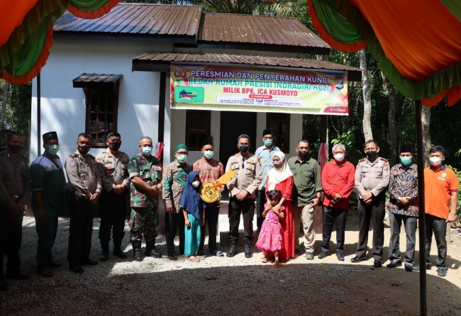 Penyerahan kunci rumah oleh Kapolres tersebut dilaksanakan Kamis 13 Januari 2022 pagi di halaman rumah Ica Kusmoyo yang merupakan peresmian perdana program bedah rumah Presisi Indragiri Hulu (INHU).