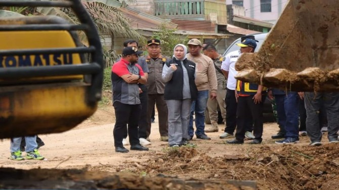 Selain meninjau proyek pekerjaan jalan di Kecamatan Batang Cenaku, Rezita beserta rombongan juga meninjau pekerjaan proyek jalan kabupaten sepanjang 2,2 KM yang sedang berlangsung di Desa Titian Resak, Kecamatan Seberida.
