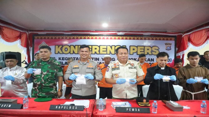 Konferensi pers ini dipimpin langsung oleh Kapolres Inhu, AKBP Fahrian Saleh Siregar, S.I.K., M.Si., serta dihadiri oleh sejumlah pejabat daerah dan perwakilan instansi terkait.