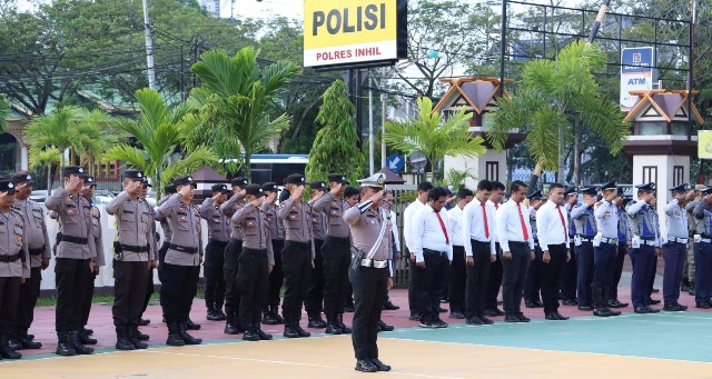 Dalam gelar pasukan, Kapolres Inhil AKBP Norhayat SIK bertindak selaku pimpinan apel.
