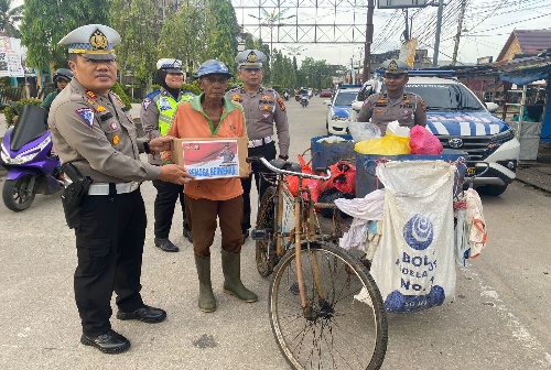 Jum'at Berkah, Sat Lantas Polres Inhil Bagikan Sembako kepada Tukang Becak dan Petugas Kebersihan