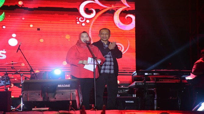 | Teks foto : Bupati Bengkalis Kasmarni Bersama Walbup saat Pembukaan Malam Puncak Hari Jadi Ke-512 Bengkalis |