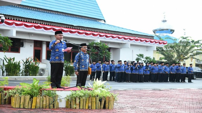 Apel yang dimulai pukul 07.00 WIB ini juga diikuti Pejabat Pimpinan Tinggi Pratama, Administrator, Fungsional dan Pengawas lingkup Pemkab Bengkalis.