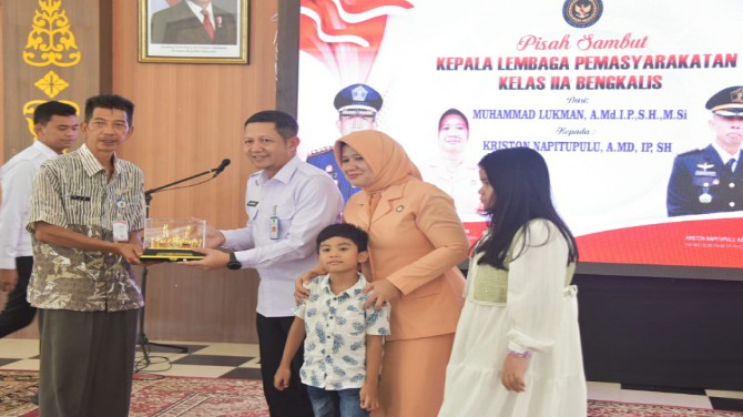 Dalam sambutan tertulis Bupati dibacakan Staf Ahli Bupati Bengkalis Bidang Kemasyarakatan dan Sumber Daya Manusia, Johansyah Syafri menyampaikan penghargaan yang tinggi dan ucapan terima kasih kepada Kalapas Kelas IIA Muhammad Lukman, atas segala pengabdian, dedikasi, sinergisitas dan kolaborasinya yang penuh tanggungjawab, dan bersedia bekerjasama dengan Pemerintah Kabupaten Bengkalis dan segenap komponen masyarakat di daerah, dalam mengemban amanahnya di Lapas Kelas IIA Bengkalis.