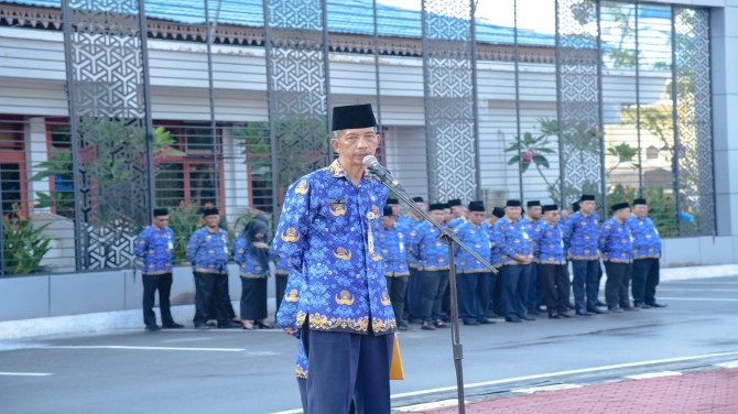 KupasKasus.com, Bengkalis - Bupati Bengkalis Kasmarni diwakili Staf Ahli Bupati Bidang Kemasyarakatan dan Sumber Daya Manusia Johansyah Syafri memimpin apel Hari Kesadaran Nasional, Senin, 17 Februari 2025 di Kantor Bupati Bengkalis.