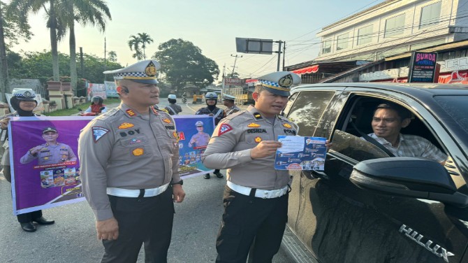 Sat Lantas Polres Kuansing Gelar Sosialisasi dan Pembagian Brosur Lomba Konten Video