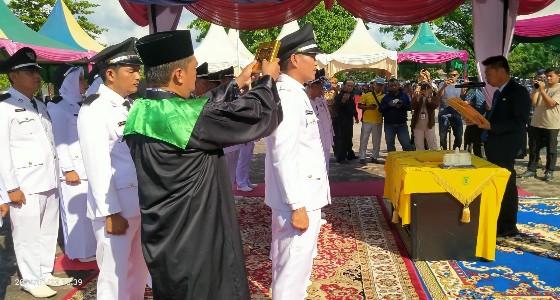 KupasKasus.com, Rohil - Bupati Kabupaten Rokan Hilir (Rohil) Afrizal Sintong, S.IP, M.Si, melantik 21 Pejabat Penghulu, 5 Orang Pejabat Administrator dan 2 orang Kepala Sekolah dilingkungan Pemerintah Kabupaten Rokan Hilir di halaman Kantor Camat Tanah Putih Tanjung Melawan Rohil, Propinsi Riau, Selasa (23/1/2024).