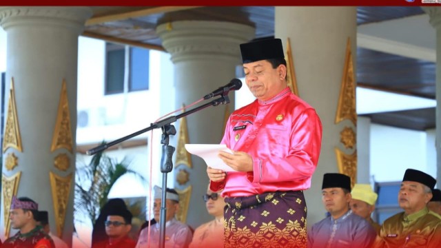 KupasKasus.com, Rokan Hulu – Pemerintah Kabupaten (Pemkab) Rokan Hulu melaksanakan apel peringatan Hari Jadi ke-68 Provinsi Riau di Halaman Kantor Bupati Rohul, Sabtu (9/8/2025). Tahun ini, perayaan mengusung tema “Merawat Tuah, Menjaga Marwah” sebagai penghormatan terhadap alam dan budaya Melayu yang menjadi identitas utama masyarakat Riau.