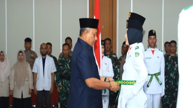 KupasKasus.com, Rokan Hulu - Bupati Rokan Hulu Anton, ST., MM. resmi mengukuhkan anggota Pasukan Pengibar Bendera (Paskibraka) tingkat kabupaten Rokan Hulu Tahun 2025 pada acara yang digelar di Convention Hall Islamic Center Rohul, Kamis malam (14/8/2025).