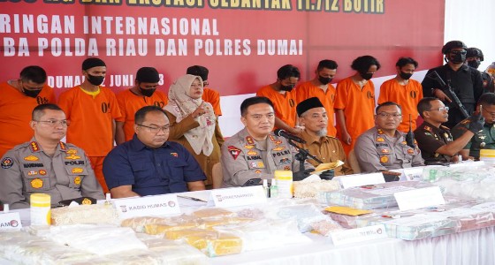 “Dari jumlah barang bukti yang berhasil diamankan, ini menunjukkan bahwa kita terus berperang dengan pengedar narkoba dan ini juga menunjukkan bahwa Polda Riau dan Jajarannya terus melakukan kinerja yang sangat luar biasa dan terus berperang secara masiv kepada mengedar narkoba. Kita proses tegas dan terukur serta tidak ada toleransi bagi pelaku narkoba, kita harus perangi bersama, para pengedar gelap narkoba gelap ini,” tegas Kapolda Riau.