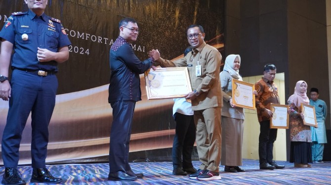 KupasKasus.com, Dumai - Bupati Rokan Hilir (Rohil) yang diwakili Sekretaris Daerah (Sekda) H. Fauzi Efrizal S.Sos, M.Si, menghadiri acara Gelanggang Awards 2024 Gemilang pengelolaan anggaran tahun 2023. Kegiatan tersebut di pusatkan di Ballroom Hotel Comforta Dumai, Selasa (27/2/2024).