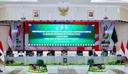 Demikian disampaikan oleh Pj Bupati Kampar saat mengikuti acara penyerahan Daftar Isian Pelaksanaan Anggaran (DIPA) dan Alokasi Transfer Ke Daerah dan (TKD) Tahun 2023 serta penyerahan plakat dan piagam penghargaan WTP yang dilaksanakan di Balai Serindit Aula Gubernuran di Pekanbaru, Senin (5/12/2022).Yang dihadiri oleh seluruh Forkopimda Riau, Lembaga, Instansi, Bupati /Walikota se Provinsi Riau.