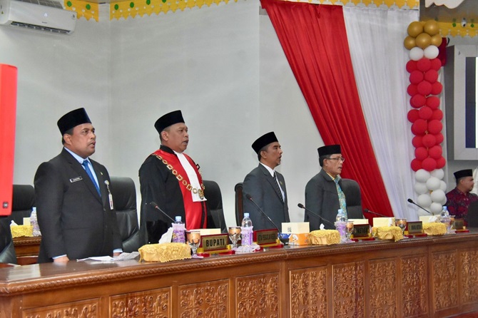 KupasKasus.com, Bangkinang - PJ Bupati Kampar H. Hambali, SE, MBA, MH yang diwakili oleh Asisten II Suhermi menghadiri Rapat Paripurna DPRD Kampar tentang Pengukuhan Sumpah Janji Jabatan Ketua DPRD Kampar Masa Jabatan 2024-2029 yang diselenggarakan di Ruang Rapat Paripurna Kantor DPRD Kampar, Rabu (18/9/2024).