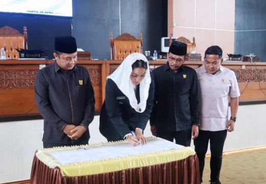 KupasKasus.com, Dharmasraya - Pemerintah Kabupaten Dharmasraya bersama Dewan Perwakilan Rakyat Daerah (DPRD) resmi menyepakati Rancangan Peraturan Daerah (Ranperda) tentang Perubahan atas Peraturan Daerah (Perda) Nomor 1 Tahun 2024 tentang Pajak Daerah dan Retribusi Daerah menjadi Peraturan Daerah. Kesepakatan ini ditandatangani dalam rapat paripurna DPRD Dharmasraya yang digelar Sabtu (26/04/2025).