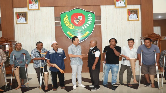 Teks foto: Bupati Tapsel Sambut 16 Warga Disabilitas Penerima Kaki dan Tangan Palsu |