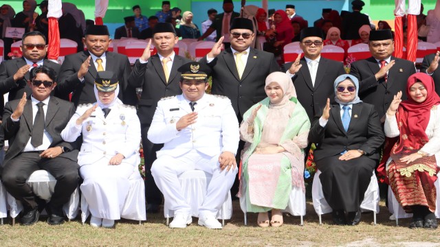 KupasKasus.com, Bintan - Pemerintah Kabupaten Bintan menggelar pelaksanaan Upacara Hari Ulang Tahun Republik Indonesia (HUT RI) ke-80 di Lapangan Bola Bukit Kerang, Kelurahan Kawal, Kecamatan Gunung Kijang. Upacara yang berlangsung terlihat begitu khidmat dan penuh semangat ditambah dengan antusias masyarakat yang memadati lokasi utama.