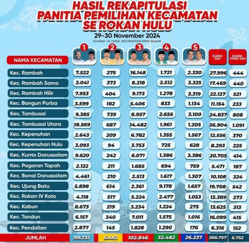 Pasangan ASA Unggul Sementara di Pilkada 2024 Rokan Hulu dengan 38,72% Suara