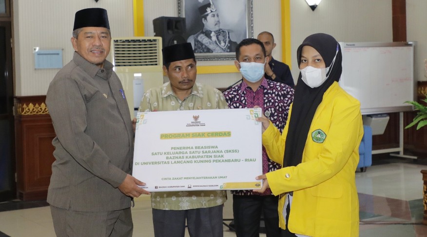 ”Alhamdulillah, hari ini kami merasa bangga bisa melepas 32 Mahasiswa Penerima Beasiswa Utusan Daerah (BUD) Program Satu Keluarga Satu Sarjana Badan Amil Zakat Nasional (BAZNAS) Kabupaten Siak Tahun 2022. Pendidikan itu rata-rata lama sekolah 9 tahun, makin banyak yang sarjana angka IPM dari aspek pendidikan kita bisa baik. Sekarang rata-rata lama sekolah penduduk kabupaten Siak 9,8, tahun, mudah-mudahan ini bisa di akselerasi dengan program satu keluarga satu sarjana" ujarnya.