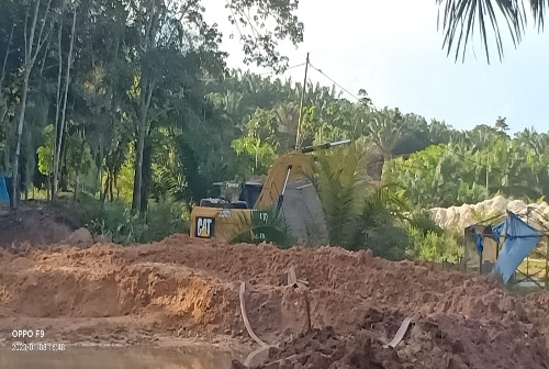 Ketika di konfermasikan kepada salah seorang penjaga pintu Gerbang yang tidak bersedia menyebutkan namanya mengatakan " benar buk itu alat berat udah bekerja dalam beberapa hari ini, dan mereka mendompeng disini, yang punya lahan itu namanya untung, mereka sewa dari untungnya, yang rumahnya di depan itu sambil menunjuk arah ke salah satu rumah, kalau mau jelasnya buk, ibuk tanya aja ke pak untungnya dia orang Tembilahan jelasnya.