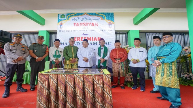 Mengawali acara peresmian tersebut, Ustadz Abdul Somad (UAS) hadir untuk memberikan tausiyah kepada para tamu undangan yang hadir. UAS pun mengatakan untuk tidak ragu memasukkan anak-anak kita ke Ma'had Islam Riau.