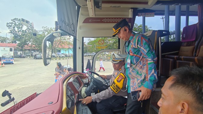 Pelaksanaan operasi keselamatan Lancang Kuning 2025 ini kita fokus tingkatkan kesadaran masyarakat dalam berkendara dan mematuhi tata tertib dalam berlalu lintas, untuk mencegah terjadinya fatalitas di jalan raya kita melaksanakan kegiatan RAMCEK Kendaraan Bus Angkutan yang kita laksanakan di Terminal AKAP Payung Sekaki Kota Pekanbaru, dan kegiatan tersebut guna antisipasi fatalitas terhadap Bus Penumpang," juara Kombes Taufiq Lukman Nurhidayat selaku KA Opsda Operasi Keselamatan Lancang Kuning 2025.