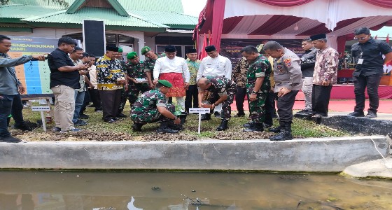 Dalam kesempatan itu, Danrem 031/Wira Bima, Dandim 0313/KPR, Bupati Pelalawan, Ketua DPRD Pelalawan dan Kapolres Pelalawan melakukan penanaman tanaman kelor di halaman posranmil yang baru diresmikan. (ndy)