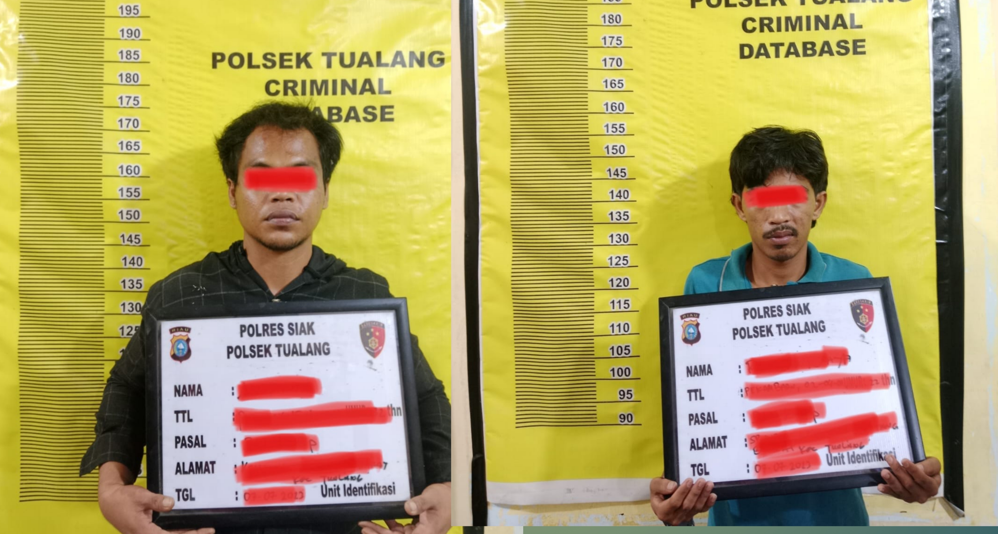 Kapolsek Tualang Kompol Arry Prasetyo SH., MH mengatakan, pelaku berinisial A Als AN, (31), Kp. Pinang Sebatang Timur dan RD Als R, 22 Thn, Kp. Pinang Sebatang Barat ditangkap atas kasus pencurian mesin pompa air, kipas angin, dan tabung gas Lpg berukuran 3 (tiga) kilogram milik Andika Rakasiwy di Simpang Gambut Pasar Tuah Negeri Kampung Pinang Sebatang Barat Kecamatan Tualang Kabupaten Siak pada hari Selasa, 27 Juni 2023 pukul 22.30 Wib