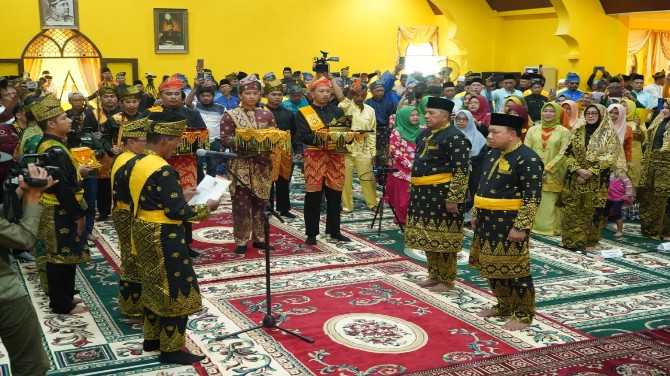 Berhasil Bawa Negeri Siak Berkemajuan, Bupati dan Wakil Bupati Siak Terima Gelar Adat