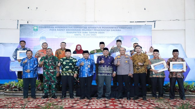 Kegiatan Pembinaan Peningkatan Kapasitas Aparatur Pemerintah Kampung pada rapat Koordinasi Pejabat Pemerintah Daerah Kabupaten Siak tahun 2024, mengambil Tema "Peran Pemerintah Daerah dan Kampung Dalam Mensukseskan PILKADA Tahun 2024 Serta Strategi Mewujudkan Kesejahteraan Masyarakat Dalam Penerapan Undang-Undang Nomor 3 Tahun 2024".