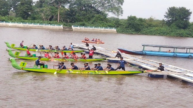 Team Dayung dari Pelabuhan  Lasdap hingga Finish di Tepian Bandar Sungai Jantan  dengan Jarak Tempuh 500m.