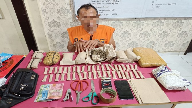 ES (52) diamankan Satres Narkoba Polres Siak dengan barang bukti 50 (lima puluh) Paket Narkotika Jenis Daun Ganja dengan berat kotor 1800 (seribu delapan ratus) gram.