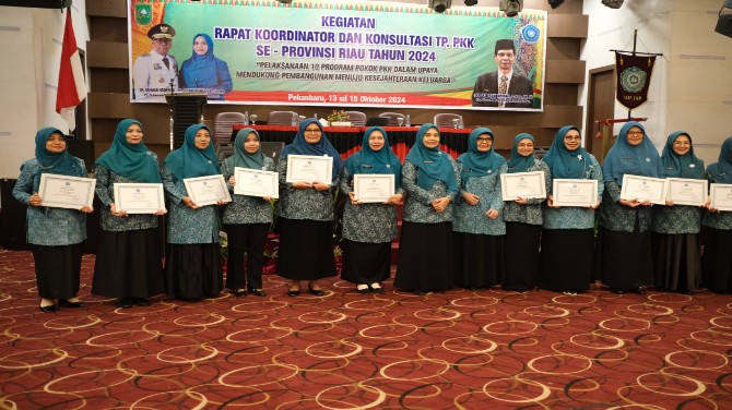 Rapat Koordinasi dan Konsultasi Tim Penggerak PKK Tingkat Provinsi Riau Tahun 2024 itu dibuka oleh Pj. Gubernur Riau. Kegiatan ini mengusung tema "Pelaksanaan 10 Program Pokok PKK Dalam Upaya Mendukung Pembangunan Menuju Kesejahteraan Keluarga".