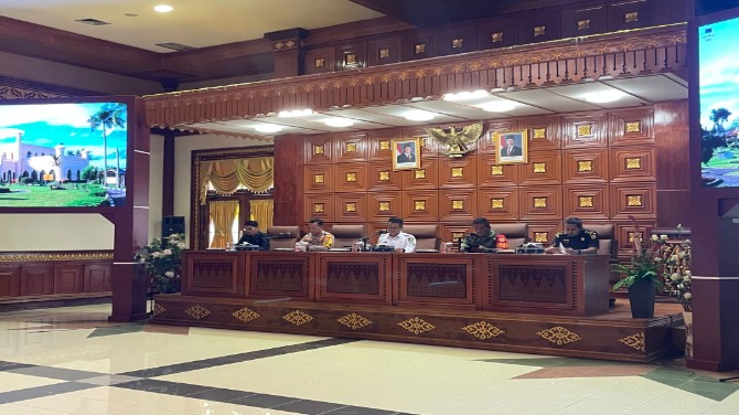 KupasKasus.com, Siak - Dalam upaya menyukseskan Pelaksanaan Pilkada Serentak Tahun 2024, Forum Koordinasi Pimpinan Daerah (FORKOPIMDA) Kabupaten Siak mengadakan rapat koordinasi bersama perwakilan KPU, Bawaslu, serta berbagai perusahaan yang beroperasi di wilayah Siak. Rapat berlangsung di Ruang Rapat Raja Indra Pahlawan, Lt II Kantor Bupati Siak, Kompleks Perkantoran Tanjung Agung, Kecamatan Mempura.
