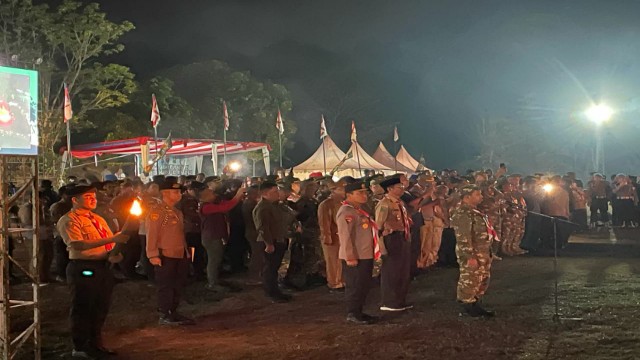 Api unggun ini, merupakan rangkaian kegiatan jambore nasional dalam rangka penanganan kebakaran hutan dan lahan (karhutla) yang pertama kalinya digelar di Indonesia.