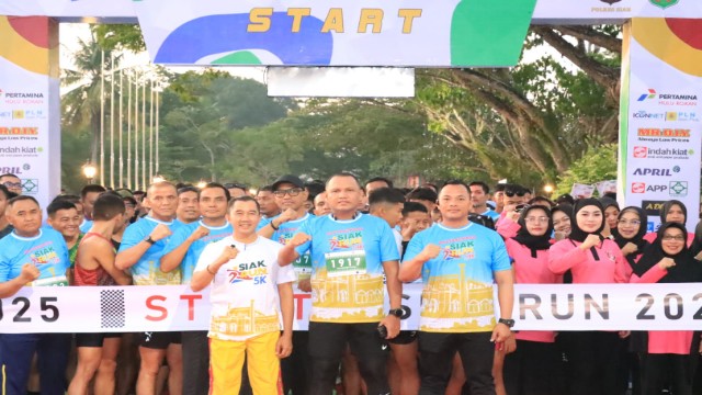 KupasKasus.com, Siak - Suasana pagi di Lapangan Siak Bermadah, Kecamatan Siak, Kabupaten Siak, dipenuhi semangat dan antusiasme ribuan peserta dalam ajang Siak Run 2025 & Road to RBR 7,9K yang digelar dalam rangka memperingati Hari Bhayangkara ke-79 Tahun 2025. Acara yang dimulai sejak pukul 06.00 WIB ini berhasil menarik perhatian masyarakat luas dengan menghadirkan lebih dari 1.100 peserta dari berbagai kalangan.