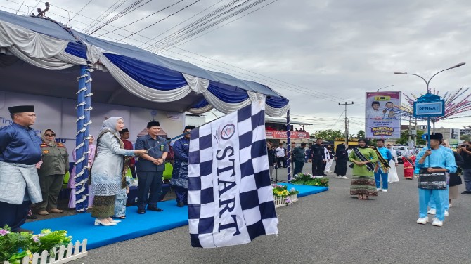 KupasKasus.com, Rengat - Bupati Indragiri Hulu (Inhu), Rezita Meylani Yopi SE menghadiri sekaligus memimpin pelepasan pawai Ta'aruf Musabaqah Tilawatil Quran (MTQ) ke-LIII Tingkat Kabupaten Indragiri Hulu di jalan Simpang Kancil Kecamatan Rengat, Rabu (18/9/2024).