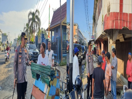 Kupaskasus.com, Inhil - Kapolres Inhil, AKBP Norhayat SIK giat patroli dengan berjalan kaki menyambangi dan menyapa Tukang Ojek dan Abang Becak di sekitar Pelabuhan Tembilahan, pada Senin (28/11/2022).
