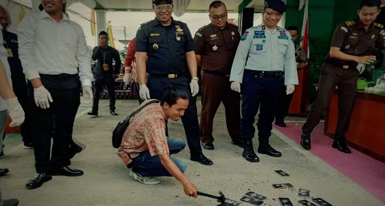 Sedangkan barang bukti jenis handphone dimusnahkan dengan cara di pukul dan di gilas menggunakan alat berat. Sementara barang bukti lainnya di musnahkan dengan cara di potong dan di bakar.