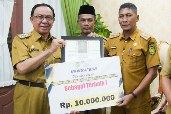KupasKasus.com, Inhil - Bupati Kabupaten Indragiri Hilir (Inhil) Provinsi Riau, HM Wardan, serahkan piagam serta hadiah kepada desa terbaik.