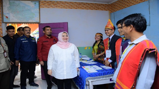 Dalam tinjauannya tersebut Bupati perempuan pertama di Riau itu memberikan semangat kepada para petugas.
