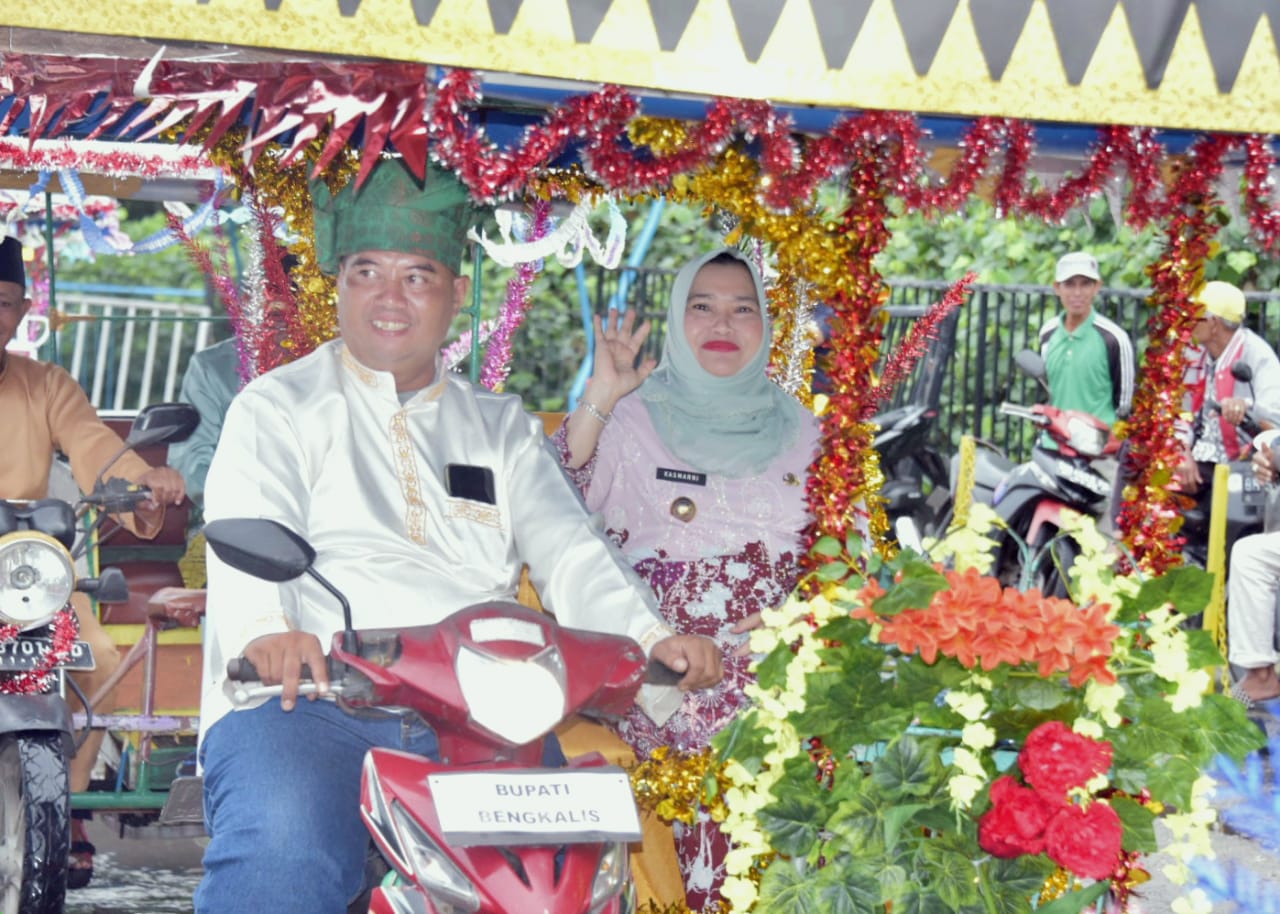 Piala Adipura dibawa keliling dengan menggunakan becak hias oleh bujang dan dara Bengkalis kemudian diikuti rombongan Bupati Bengkalis bersama seluruh Kepala Perangkat Daerah di lingkungan Pemerintah Kabupaten Bengkalis dan para  Forkopimda Bengkalis.
