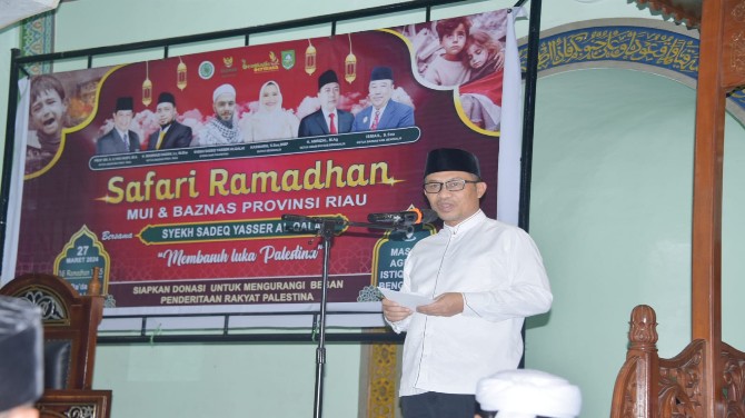 "Sejalan dengan tema safari Ramadhan malam ini “Membasuh Luka Palestina” yang bertujuan untuk meningkatkan intensitas kepedulian kita kepada palestina, karena persoalan palestina belum berhenti. Mudah-mudahan dengan mendengarkan tausiyah Syekh Sadeq Yasser Al-Qalal dapat mengerakan hati masyarakat Kabupaten Bengkalis membantu Palestina," ujarnya.